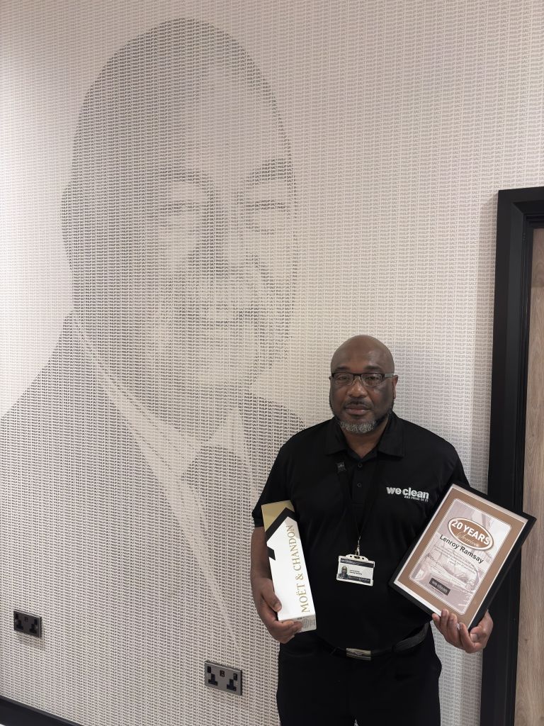 Today, at 56, Lenroy stands proudly as the first we clean operative to reach 20 years of service. And not just any 20 years: two decades supporting one of our longest-standing clients, Salts Healthcare, at their Richard Street site. A place he has come to know inside out, and a team he has truly become part of.