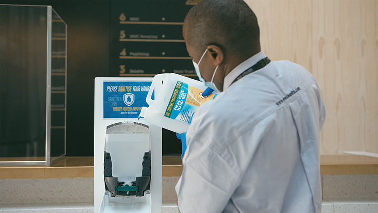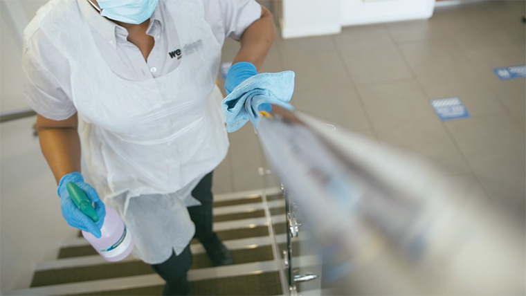 Our Cleaning Technicians are immaculately presented in we clean uniform, with appropriate PPE and will adhere fully to detailed risk assessments and method of works plus any specific client guidelines to maintain COVID secure workplaces. Our objective is to make you and your building users feel assured that all measures have been taken to protect everyone against this hidden virus. Our services are all-encompassing and carried out by our highly trained and experienced Cleaning Technicians who will specifically focus on all touchpoints such as door handles, lifts, stairways, desks, kitchens, seating and carpeted areas. We have been providing these services extensively across our client portfolio and numerous differing commercial sectors. We are ready for the challenges that COVID-19 has imposed upon us all and we will strive to keep you and your employees safe.