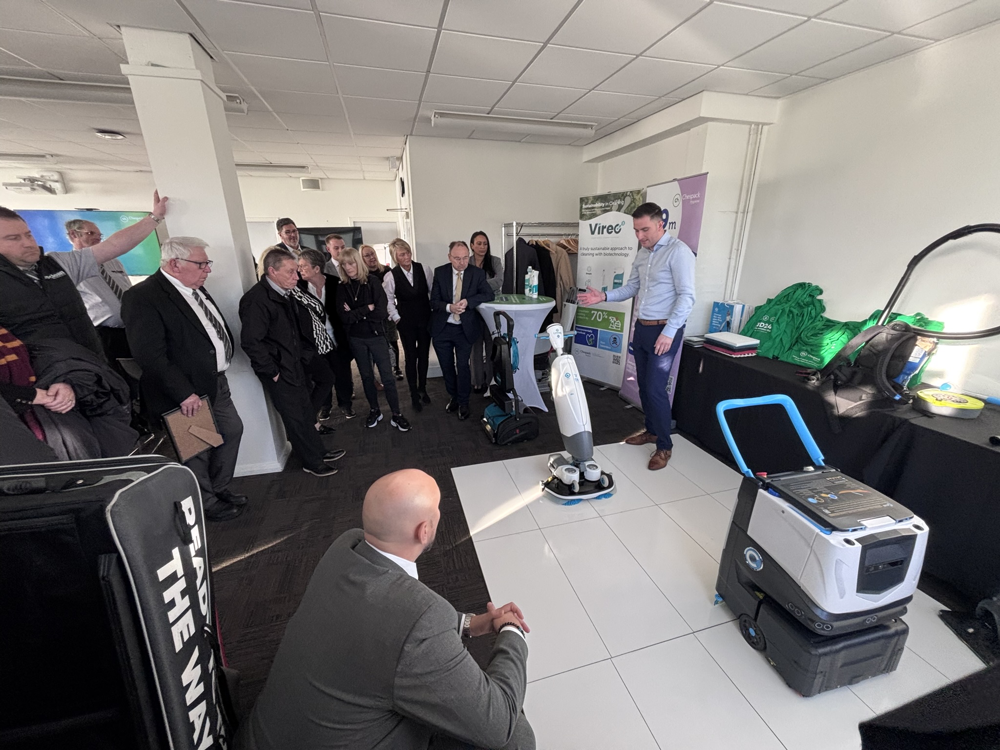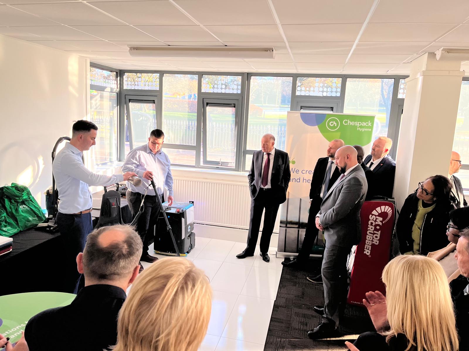 The Chespack pair then demo’d new equipment enabling the we clean Management Team to get hands on with new ‘chemical free cleaning’ products and advanced cobotic machinery – always a crowd pleaser!